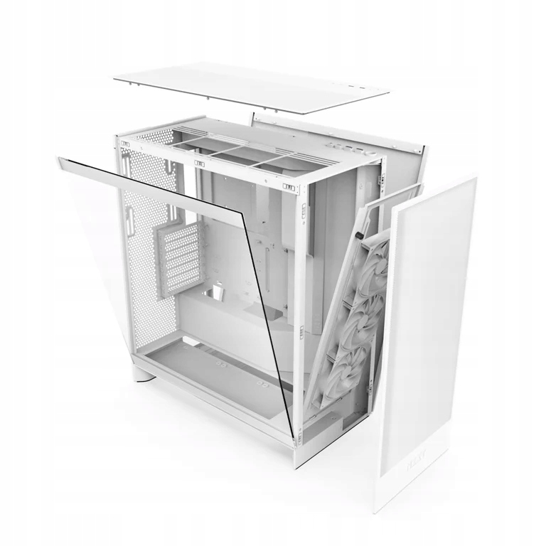 NZXT H7 Flow. Układ: Midi Tower, Model: PC, Kolor produktu: Biały. Zainstalowane wentylatory przednie: 3x 120 mm, Obsługiwana średnica wentylatorów przednich: 120,140 mm, Obsługiwana średnica wentylatorów tylnych: 120,140 mm. Obsługiwane rozmiary dysków twardych: 2.5,3.5". Szerokość produktu: 244 mm, Głębokość produktu: 468 mm, Wysokość produktu: 544 mm
